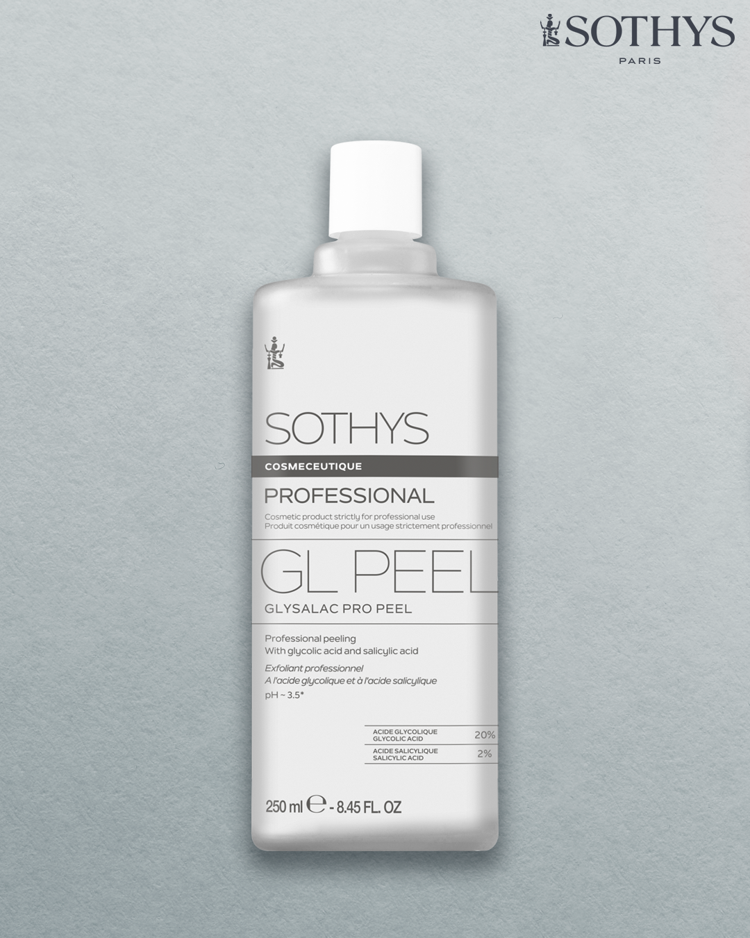 Sử dụng thành phần hoạt tính cao cấp từ Sothys Paris: Glysalac Pro Peel với 20% Glycolic Acid2% Salicylic Acid giúp loại bỏ tế bào chết nhẹ nhàng, làm đều màu và sáng mịn da. Kết hợp cùng Regenerative Solution chứa Glyco-repair 3%D-Panthenol, hỗ trợ phục hồi tức thì, tăng đàn hồi và đem lại làn da rạng rỡ.